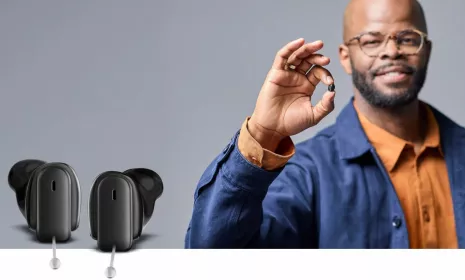 Le micro-contour d’oreille, très polyvalent, associe un design discret à une technologie performante. Grâce à son écouteur déporté, il garantit une restitution sonore claire et naturelle, tout en restant très peu visible. Ce modèle convient aux pertes auditives légères à modérées et s’intègre facilement dans le quotidien.